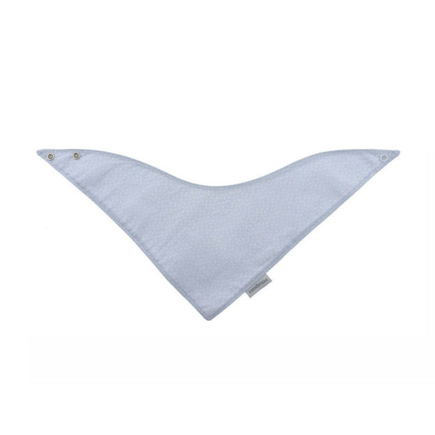 Bandana savleklud Himmelblå 38x18cm Med trykknap man kan regulere i 2 størrelser. form trekantet. Rigtig god til når barnet får tænder, så han/hun ikke bliver våd på tøjet. Stykket der vender ind mod barnet er 100% bomuld, så det også er behageligt.